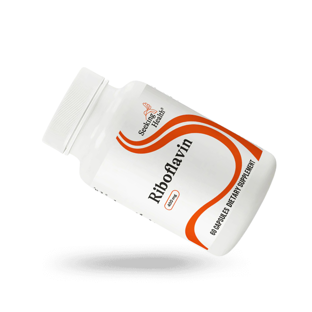 Seeking Health Riboflavin 60 Capsules deliver a potent 400 mg dose of vitamin B2 per capsule, utilizing a blend of riboflavin and its active form, riboflavin-5'-phosphate (R-5-P). This bioavailable formulation supports energy production, methylation processes, and overall cellular health, making it ideal for individuals with increased physiological needs or genetic variations affecting B2 metabolism.